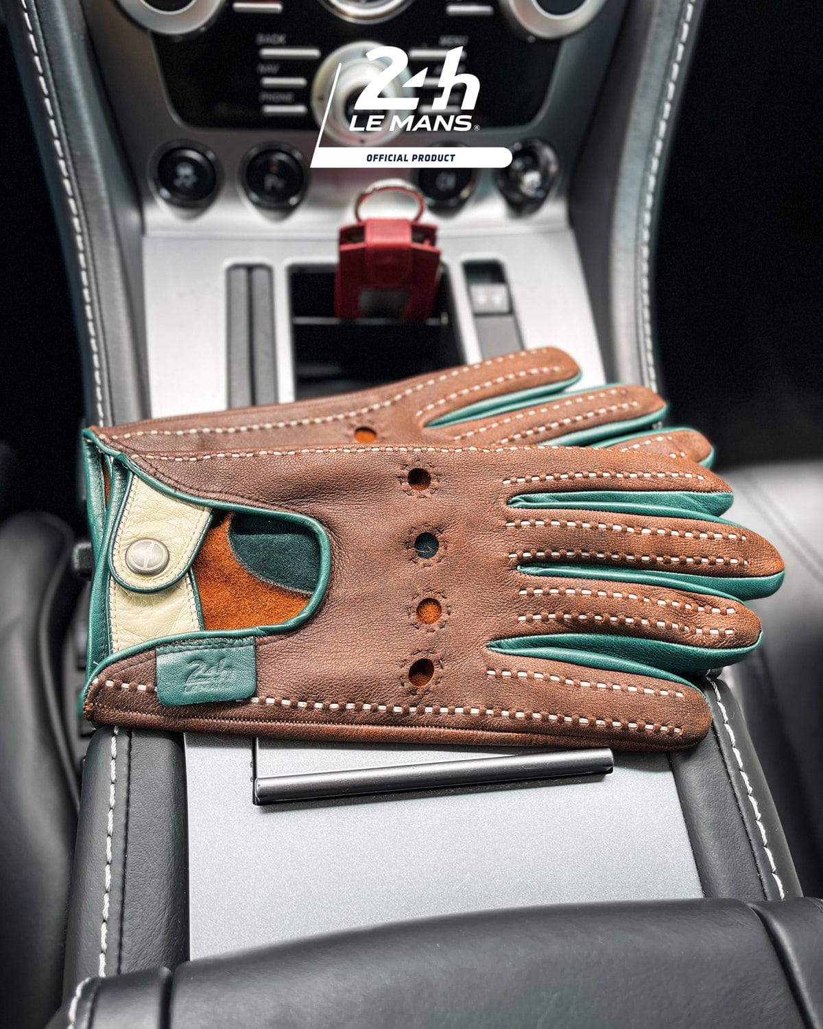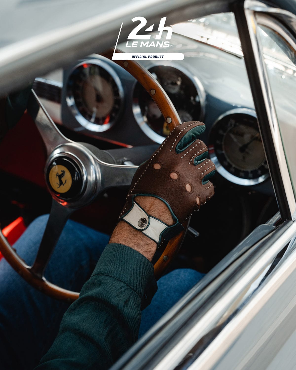 The aesthetic of the golden years of racing meets the design of modern driving gloves in the pursuit of high-performance style. This limited-edition The Outlierman driving gloves, created ad hoc by our Bologna-based designers in honor of one hundred years of the most famous endurance race, combine research on the look of 1950s and 1960s drivers - such as vintage-effect leather - with a study of optimal features to ensure the best grip on the wheel.