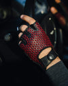 BESPOKE - Fingerless Peccary Leather Driving Gloves - Ivory/Blue