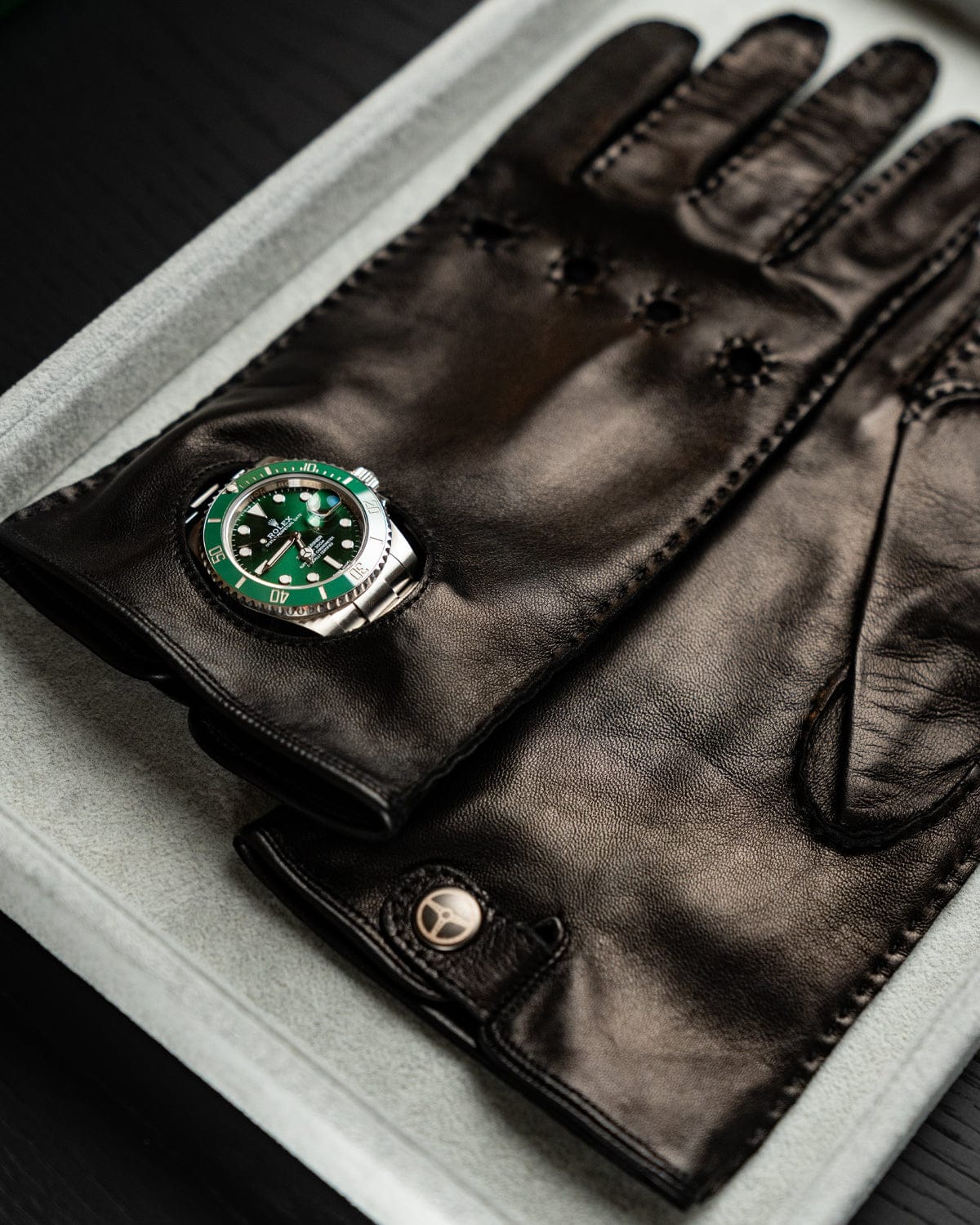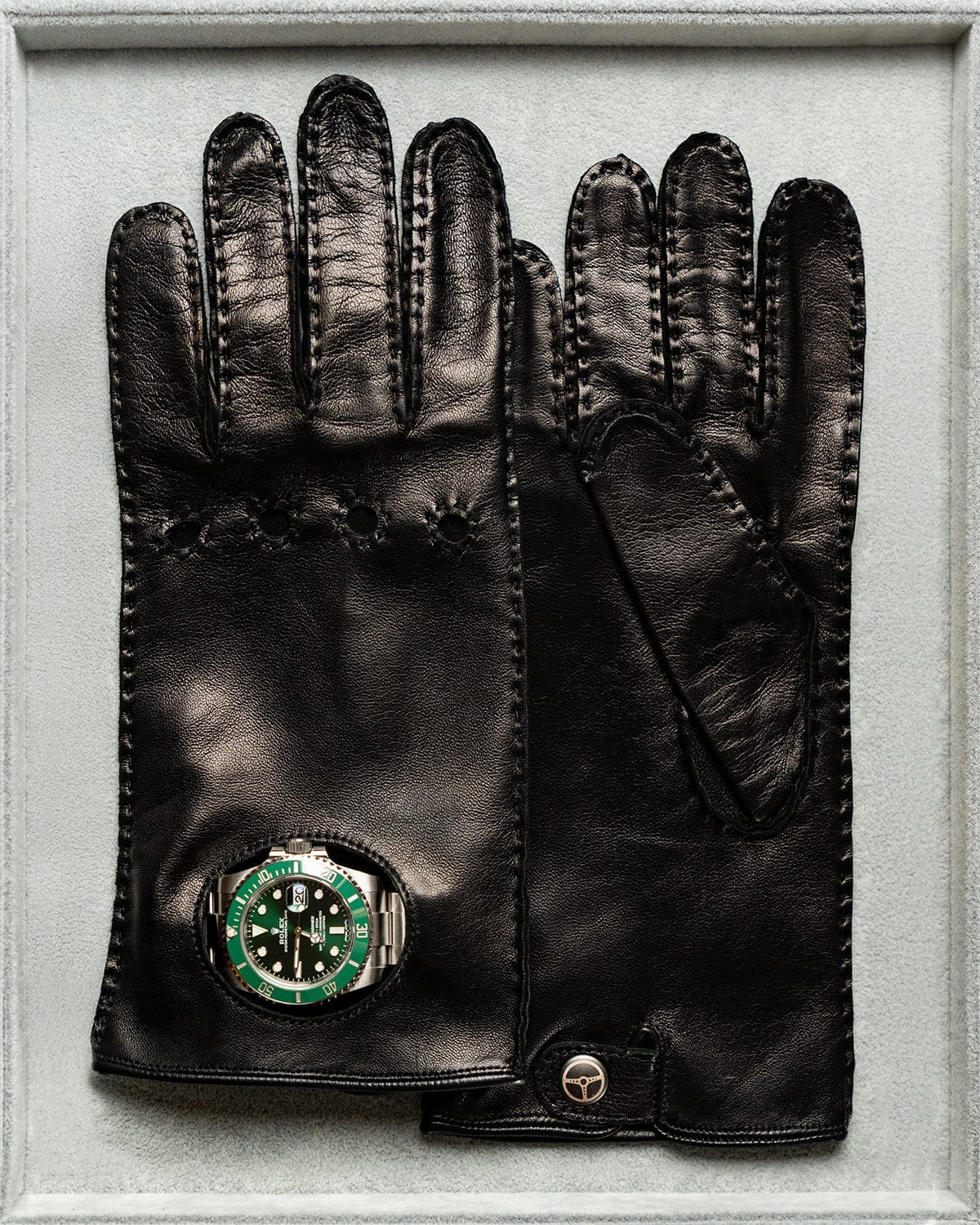 Entirely 100% Made in Italy, the Timekeeper gloves are designed for those who consider both driving and timekeeping as true arts, where precision, elegance and feeling come together behind the wheel.