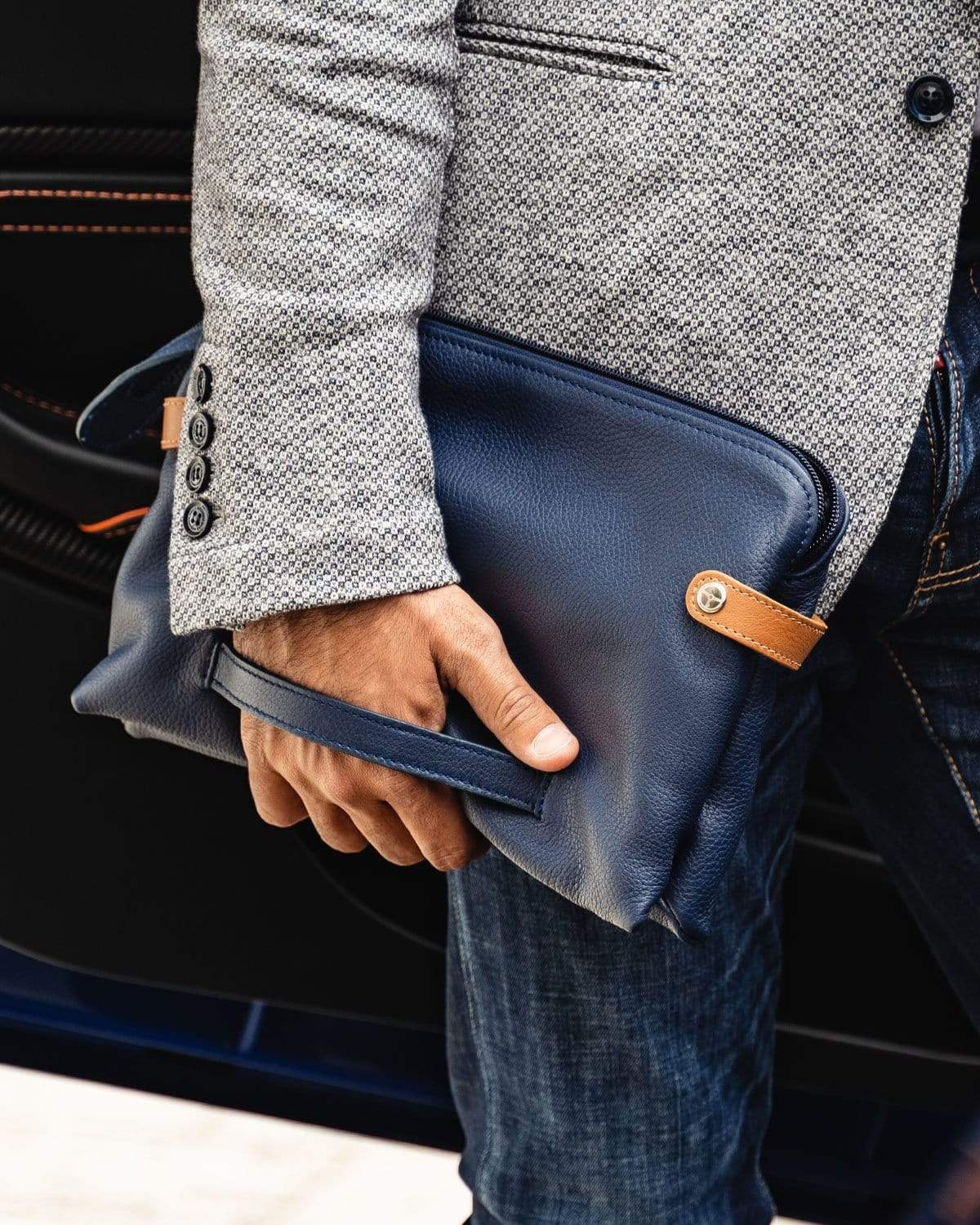 Class and practicality at the service of style. The Document Case is designed to distinctively hold everything that can clutter the hands or pockets of a Gentleman: from keys to smartphones, from tablets to wallets, from glasses to neckties and driving gloves. Equipped with a double internal compartment, zip closure and an external handle that allows for a more comfortable grip, the Document Case derives from a careful design that combines refined details and finishings with the functionality of space capable of expanding without losing the elegance of its shape. A result achieved through the use of fine full-grain leather hand-stitched by master craftsmen, coupled with a 100% cotton drill inner lining featuring “Outlierman’s Roads” pattern: a tribute to the interior and exterior colors of legendary classic cars.