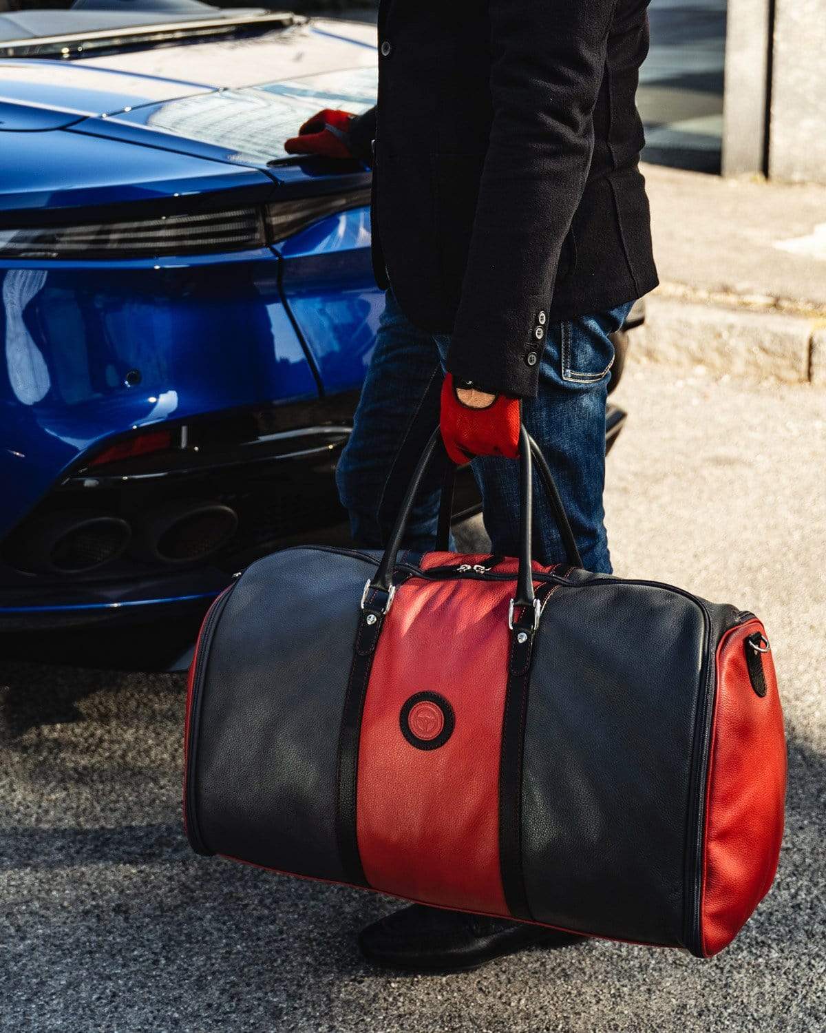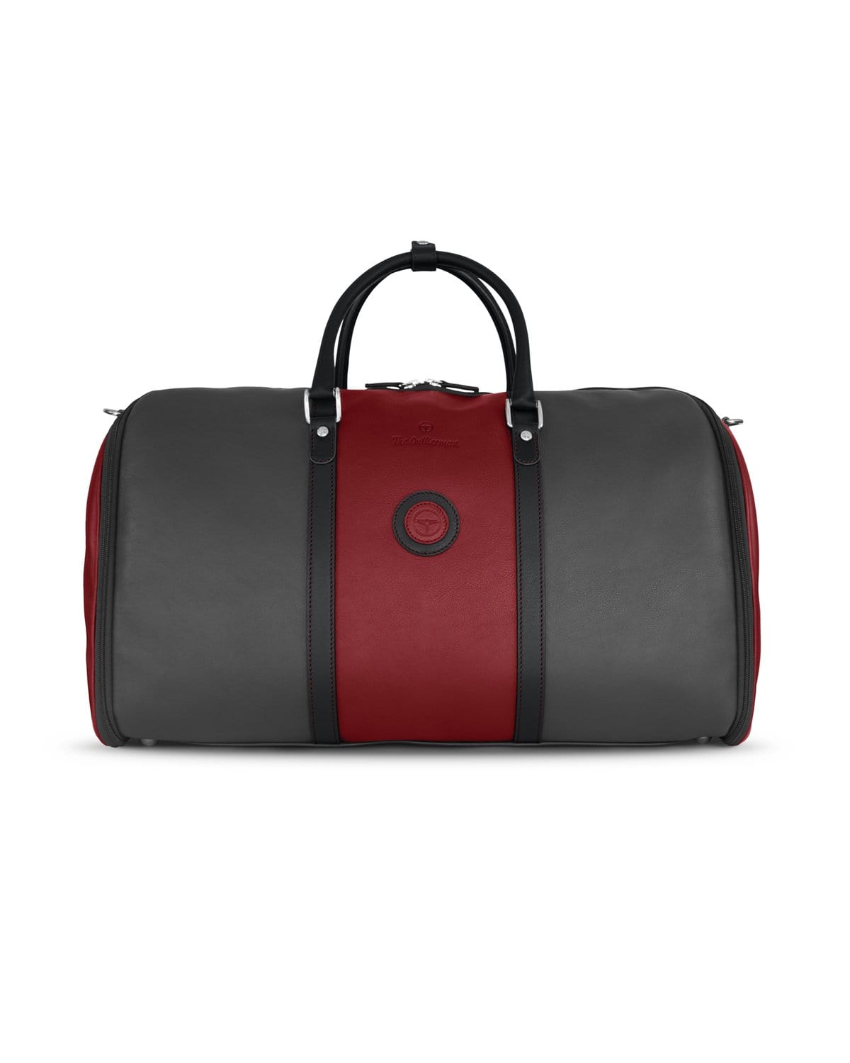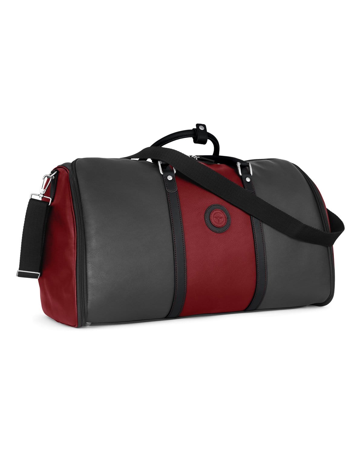 GLOBETROTTER - Full-grain Leather Weekender Garment Bag - Grey/Black/Red