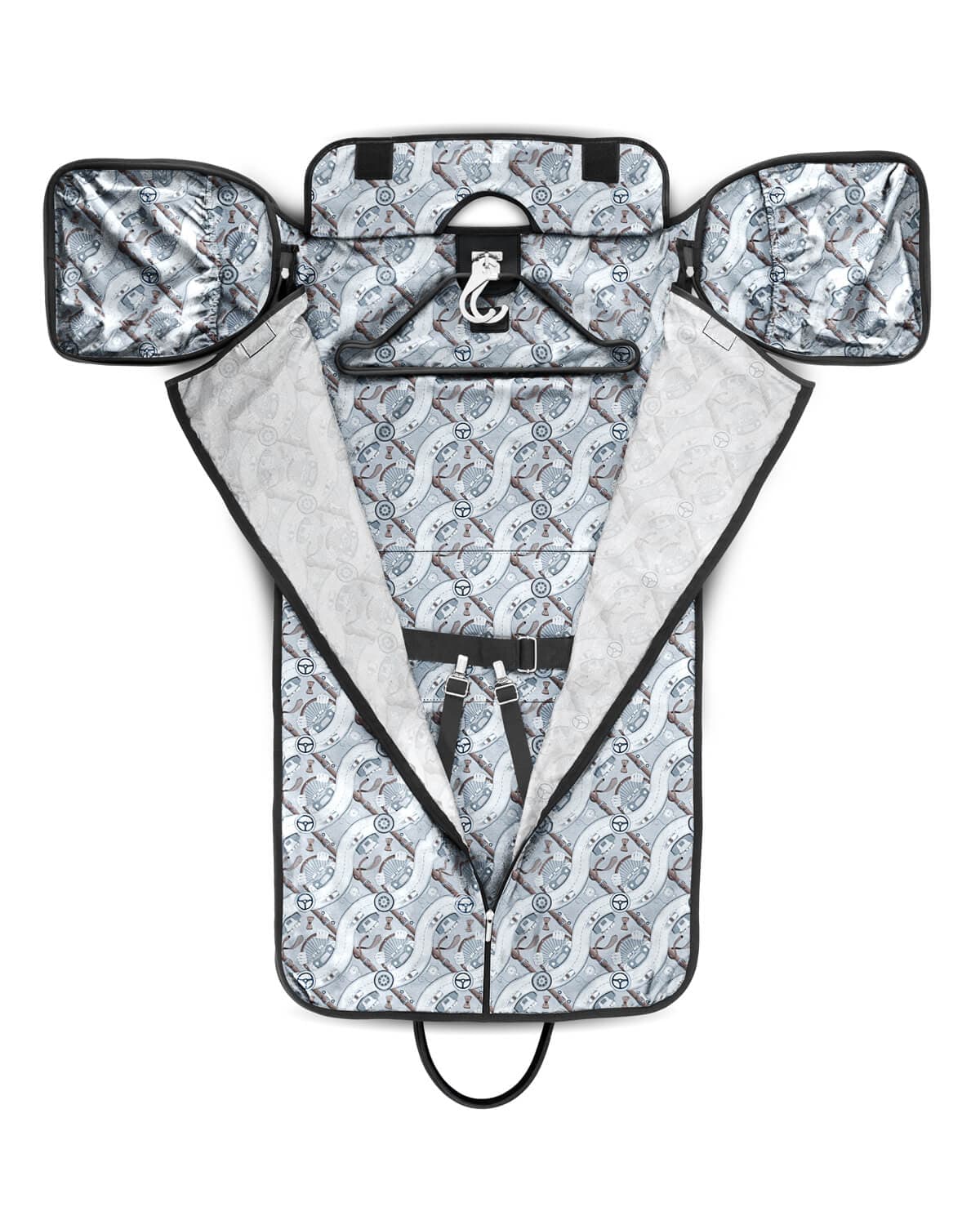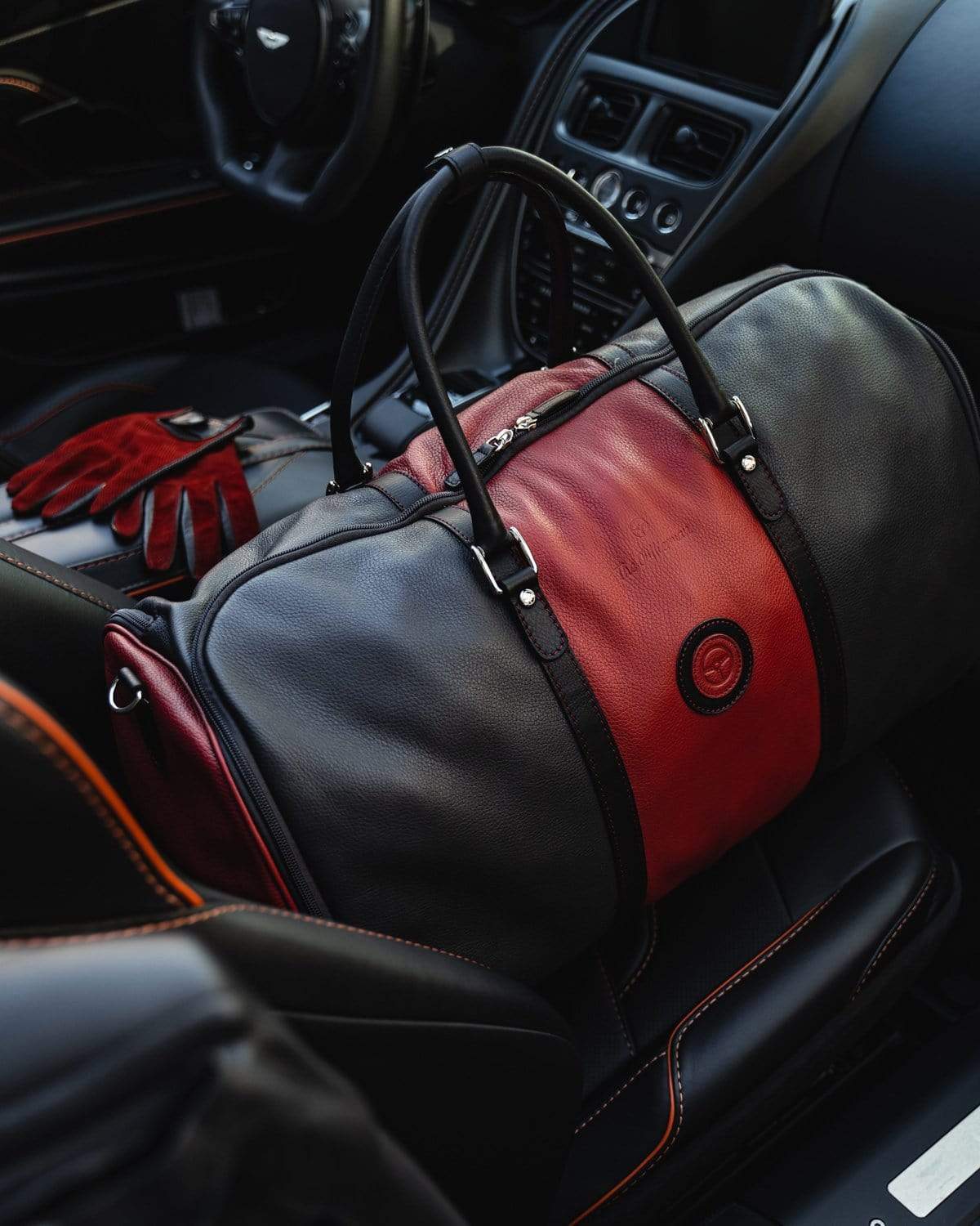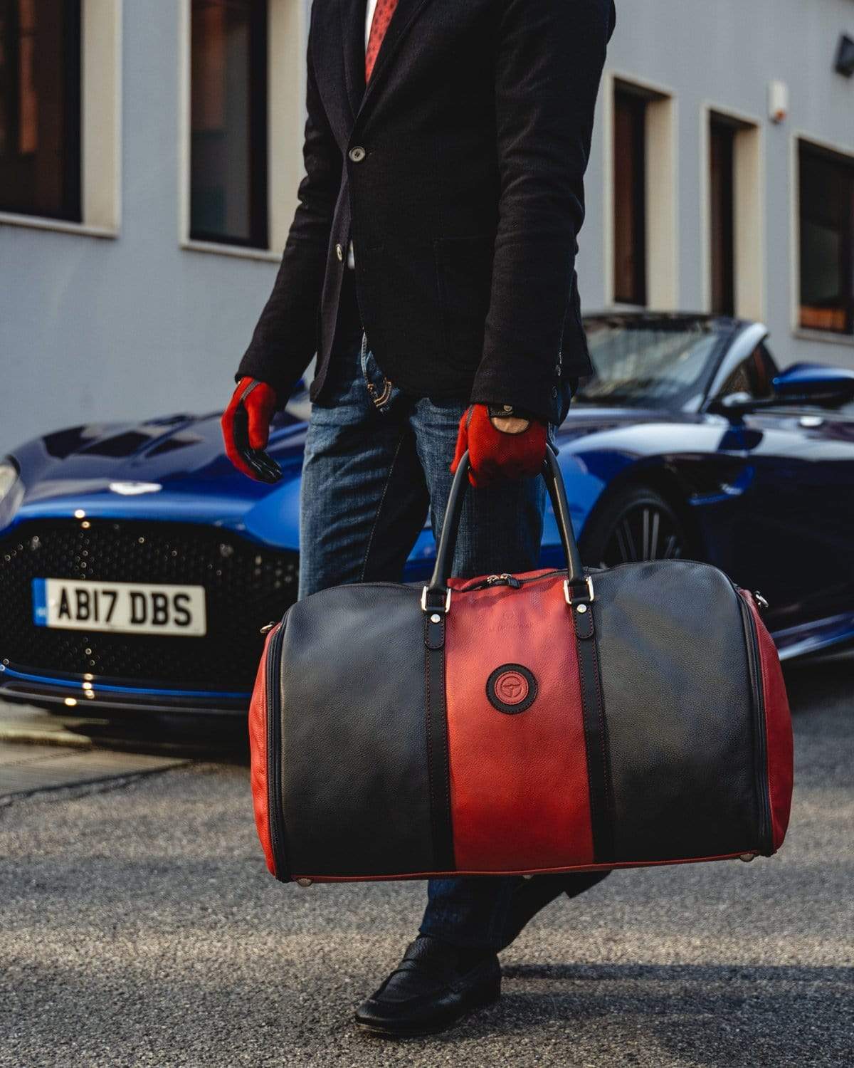 GLOBETROTTER - Full-grain Leather Weekender Garment Bag - Grey/Black/Red