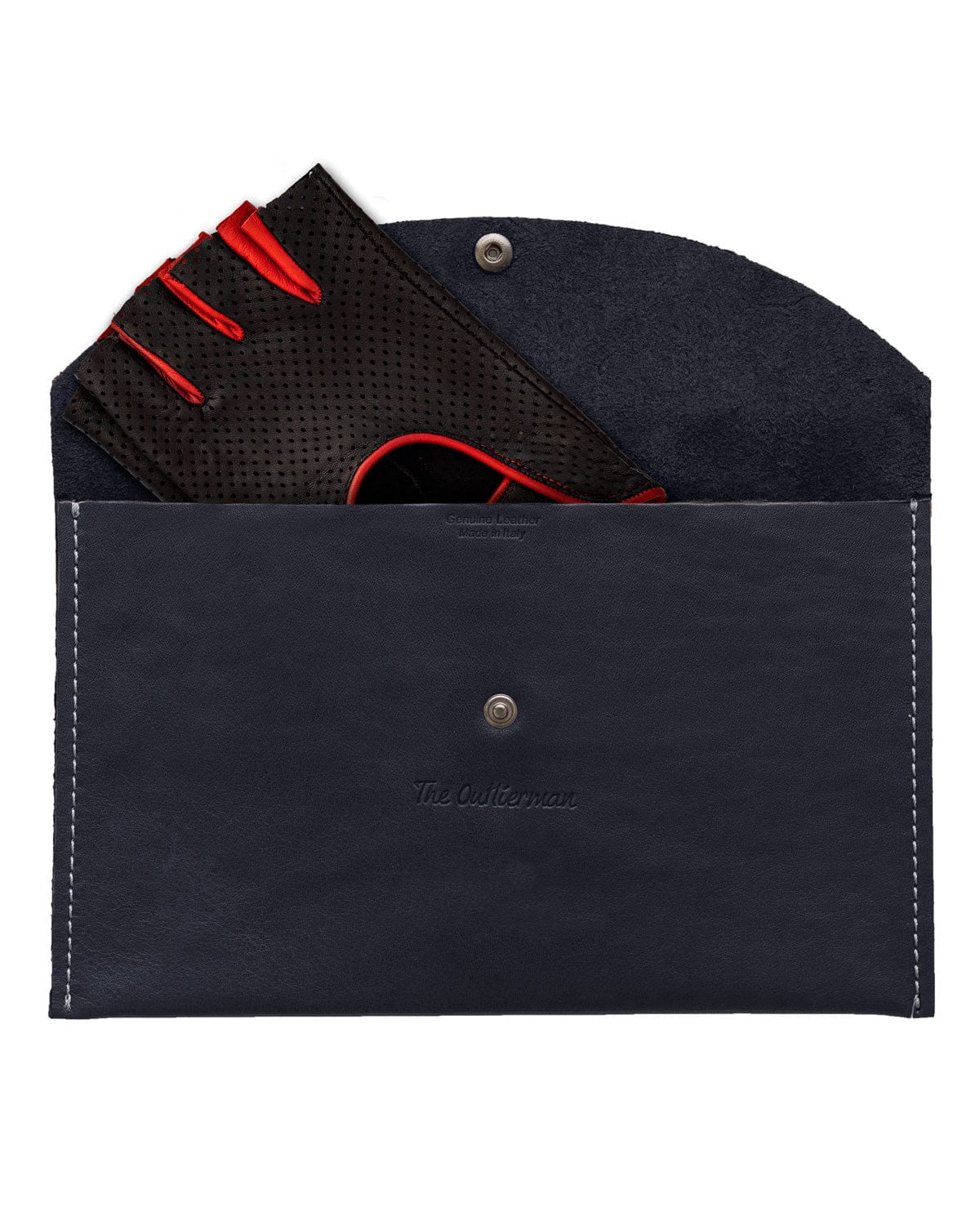 THE OUTLIERMAN gloves BAD ONE - Fingerless Leather Driving Gloves - Black/Red